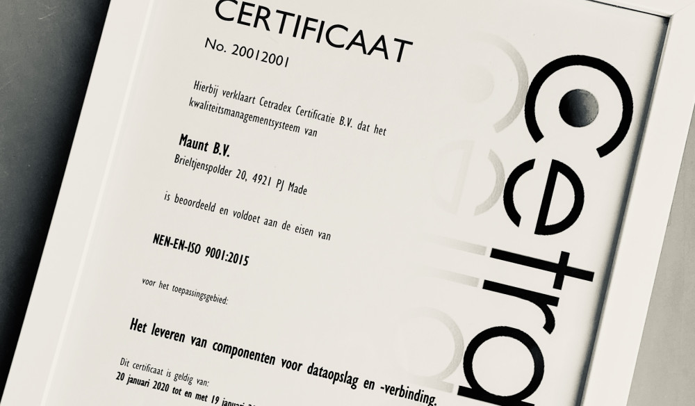 Jusqu'en janvier 2023, Maunt est officiellement certifié ISO. Les processus certifiés constituent la base de l'organisation. Maunt les a cartographiés et automatisés de A à Z. La qualité est ainsi garantie à court et à long terme.